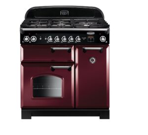 Rangemaster CLA90DFFCY/C 90cm Classic Dual Fuel Range Cooker | Cranberry & Chrome