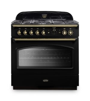 Rangemaster CLAS90FXDFFBL/B 90cm Classic FX Dual Fuel Range Cooker | Black & Brass