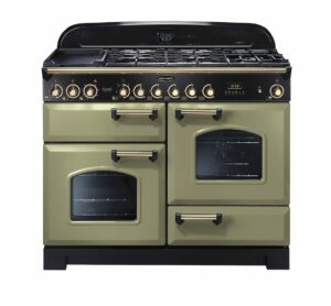 Rangemaster CDL110DFFOG/B 110cm Classic Deluxe Dual Fuel Range Cooker | Olive Green & Brass