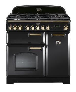 Rangemaster CDL90DFFCB/B 90cm Classic Deluxe Dual Fuel Range Cooker | Charcoal Black & Brass