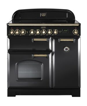 Rangemaster CDL90ECCB/B 90cm Classic Deluxe Electric Range Cooker | Charcoal Black & Brass