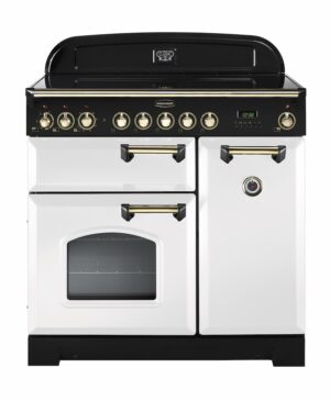 Rangemaster CDL90ECWH/B 90cm Classic Electric Range Cooker | White & Brass