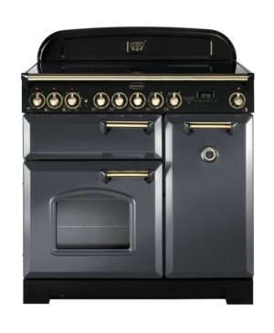 Rangemaster CDL90ECSL/B 90cm Classic Deluxe Electric Range Cooker | Slate & Brass