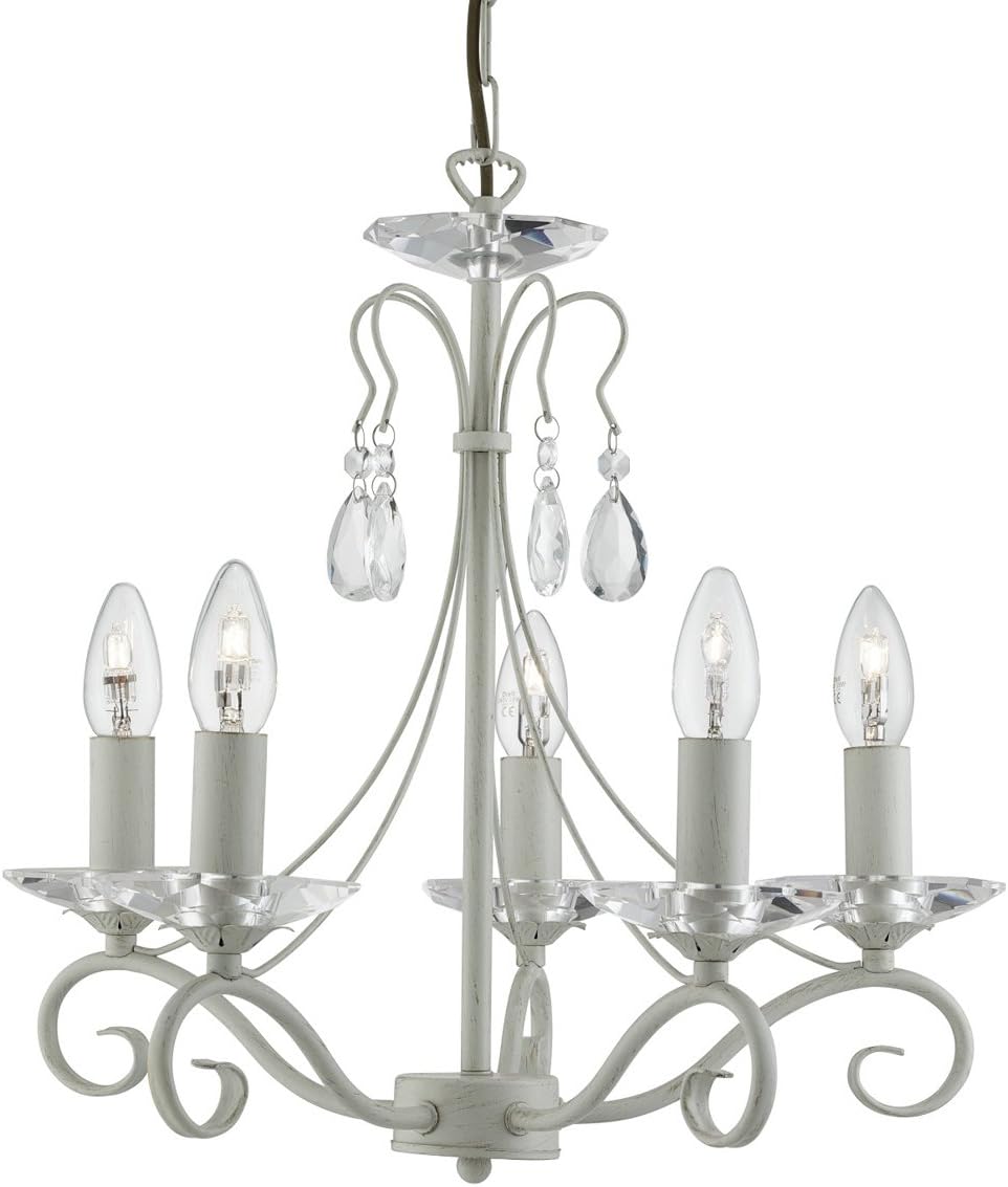 Searchlight 1245-5CR Verona 5 Light Crystal Pearl Drop Pendant | Cream & Glass
