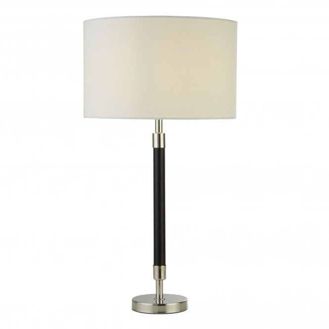 Searchlight 1716CC Arno Table Lamp | Dark Wood & Chrome with White Shade