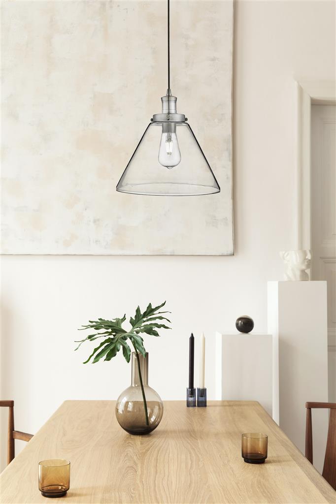 Searchlight 3228SS Pyramid 1 Light Pendant | Satin Chrome & Glass