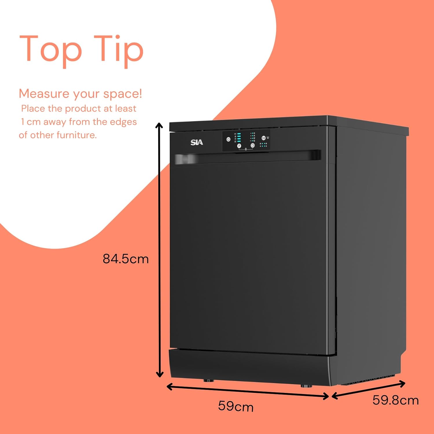 SIA SFSD604BL Full Size Dishwasher | 14 Place Settings | Black